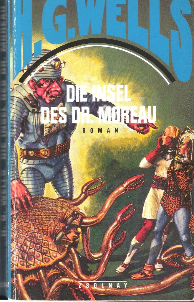 Ebenso düster und unheimlich wie die erwähnten und andere Erzählungen ist auch Wells‘ Roman „Die Insel des Dr. Moreau“ (1896). Er schildert die Abenteuer des Wissenschaftlers Moreau, den widrige Umstände auf eine entlegene Insel verschlagen. Dort führt er groteske Tierversuche durch, verwandelt Hunde, Affen, Raubkatzen, Stiere, Hyänen und andere Tiere mittels operativer Eingriffe in perverse Mischwesen, die sowohl menschliche als auch tierische Eigenschaften besitzen.